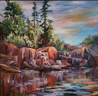 Jewell's art is a clear example of the brilliant landscapes of the Kewarthas' and Georgian Bay areas. She captures the beauty of the changing seasons with the richness of their colour and as light creates a brilliance or shadows cast reflections on the water.