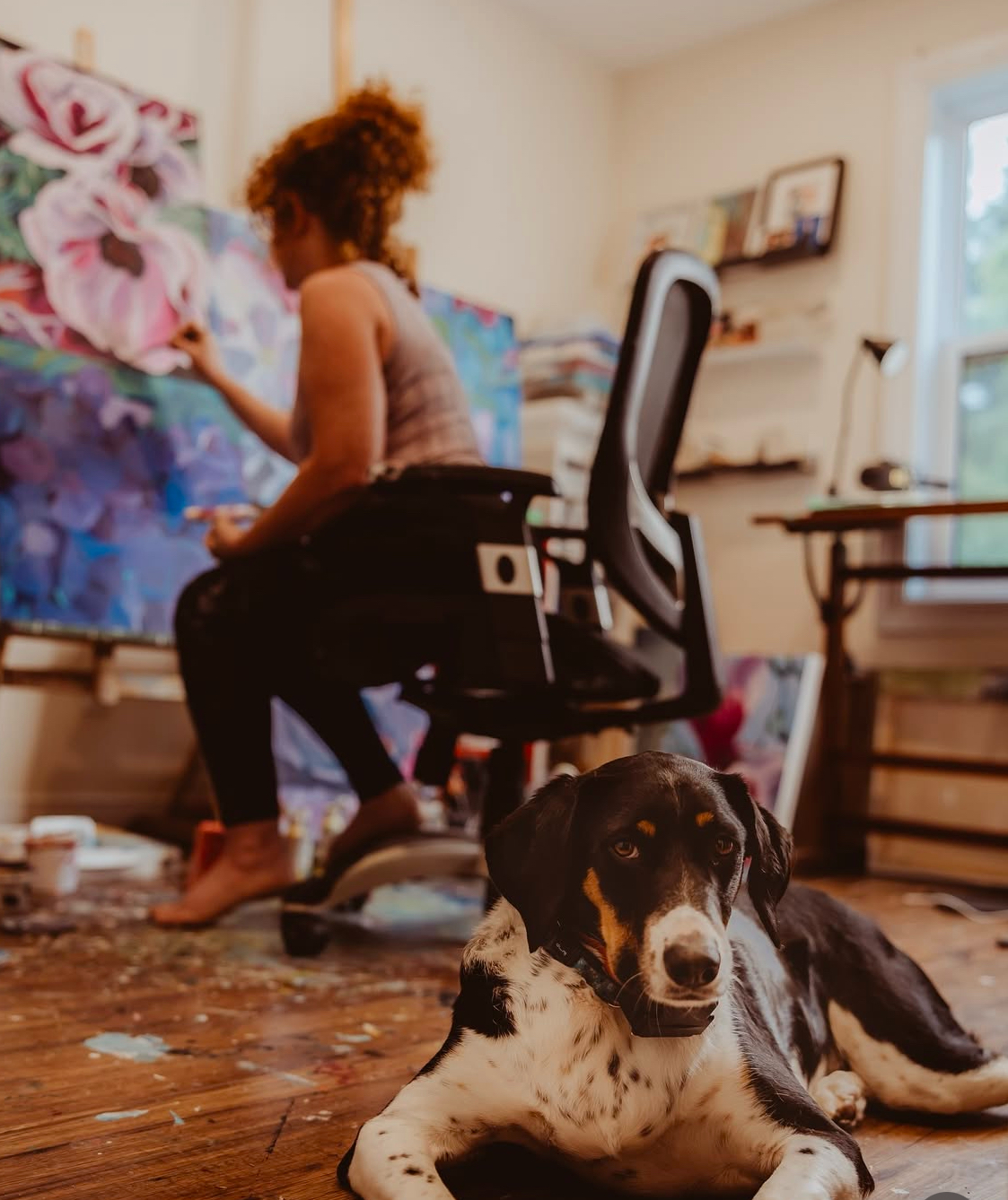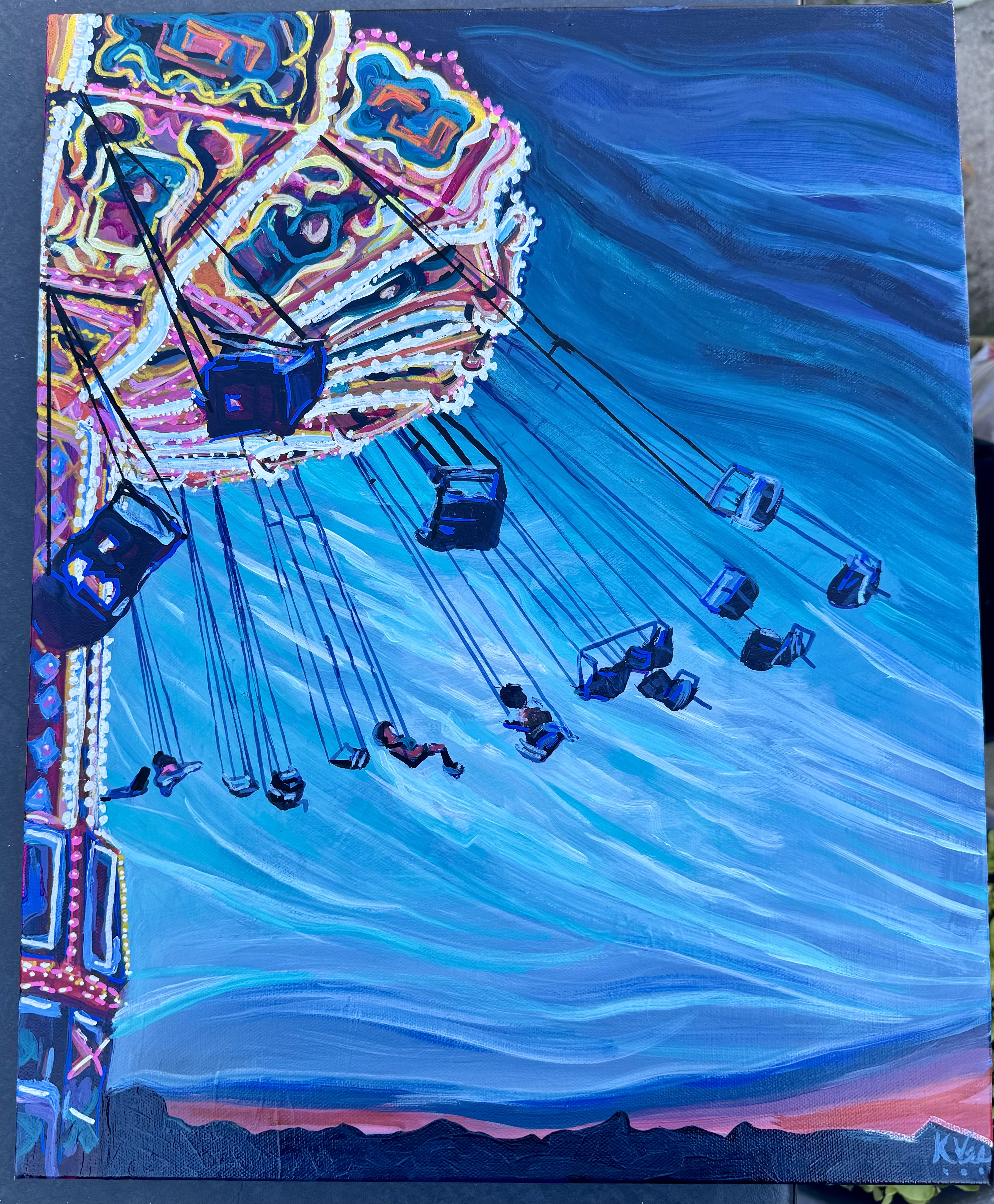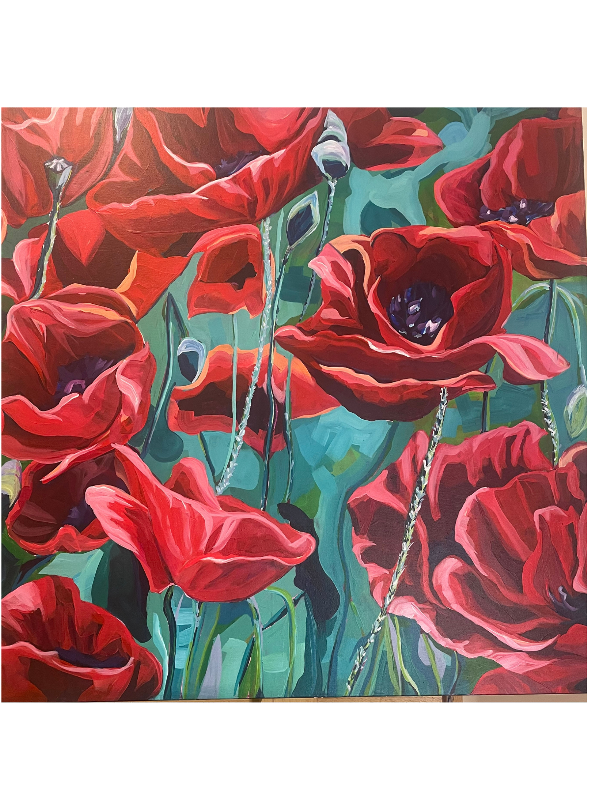 In pursuit of a quieter life where she can thrive, Kerry and her family relocated to Grafton, Ontario in October 2022 where she paints out of her home-based studio. She documents her artistic journey and perpetual recovery from acquired brain injury, often with a comedic take, on instagram at hereshecreates.