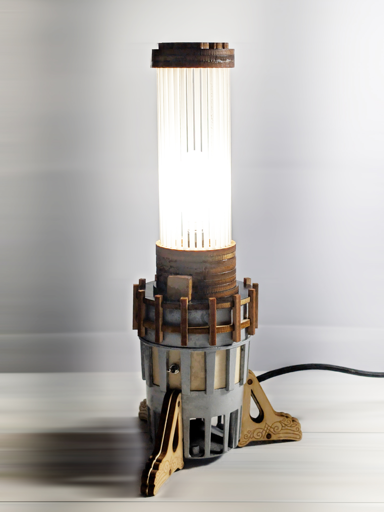 Currently I am largely focused on lamp making from found/salvaged/thrifted and natural materials; using laser-cutting/etching to connect and/or enhance these elements. I take great pleasure in using recovered objects and materials for things for which they were never intended. I love allowing shapes to interact, finding harmony in unrelated elements, and engineering these into something with purpose, something with which we can interact. I love practical things that have an aesthetic that almost pre-empts their practicality.